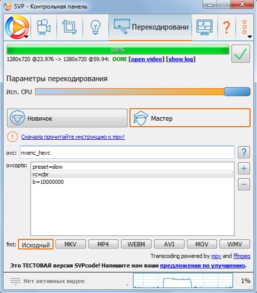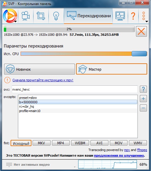прошу Вас рассмотреть вопрос о доработке функционала SVP c тем, чтобы можно было конвертировать исходный файл в файл с 60fps.
