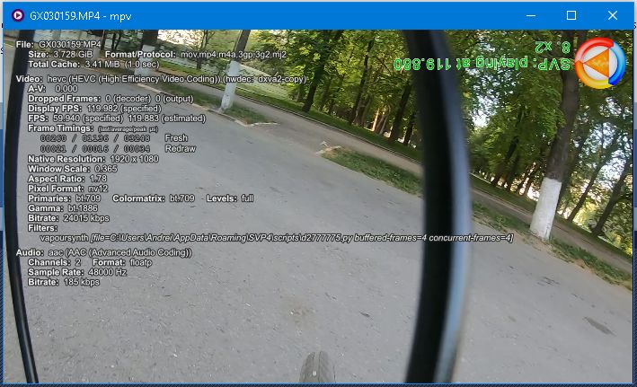 При просмотре видео, записанных перевёрнутой gopro камерой, в mpv видео воспроизводится нормально (выглядит не перевёрнуто), но SVP оверлей перевёрнут на 180 градусов и находится в правом верхнем углу.
