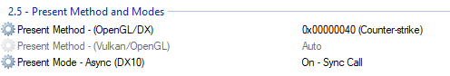 Sync mode: Vsync (most vblanks greater smoothness)
