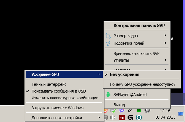 После установки в меню, "Ускорение GPU" недоступно - нету видеускорителя!