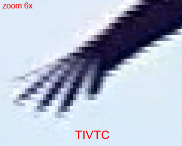 Видно, что на выходе TIVTC яркость многих вертикальных пар точек одинаковая. Местами пара точек идет через одну. Откуда взялась такая потеря вертикального разрешения - не понятно. Сперва я думал, что это очень похоже на CUE (chroma upsamling error). Но характер искажений все же другой.