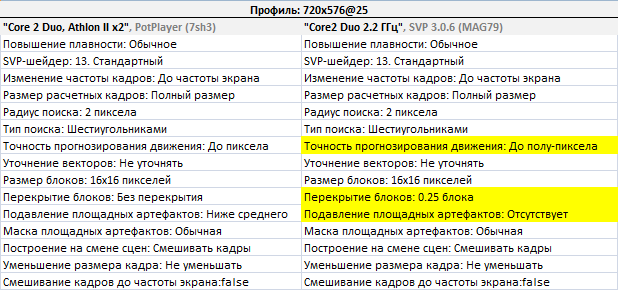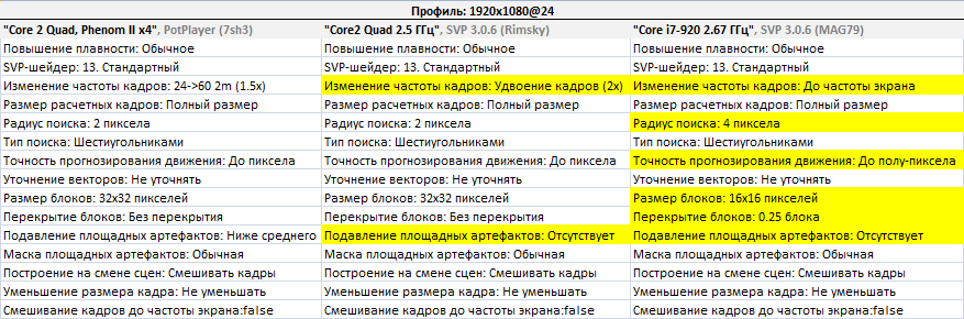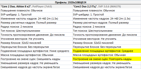 Вот сравнение профилей SVP, установленного с PotPlayer'ом с оригинальными профилями SVP 3.0.6.