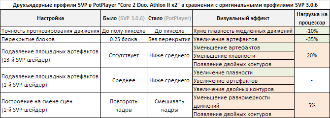 Часть 2. Четырехъядерные профили SVP в PotPlayer: "Core 2 Quad, Phenom II x4"