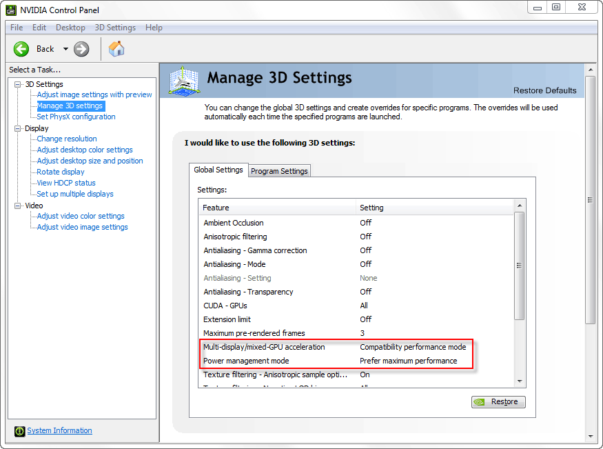 2. Настроил драйвер: Compatibility performance mode + Prefer maximum performance