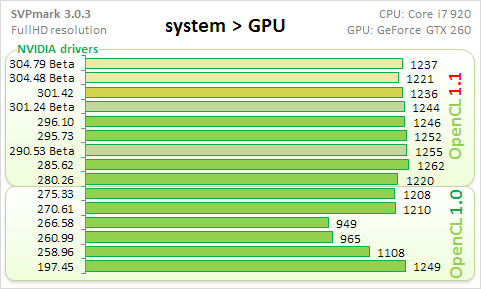 В итоге, я пока остаюсь на версии драйвера, все еще показывающей лучшую скорость: 258.96