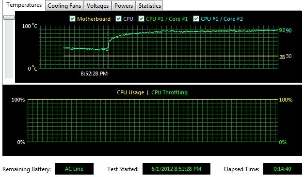 Во! Слова vivan'а про перегрев напомнили мне про такую штуковину, как троттлинг. При работе троттлинга процессор пропускает такты и производительность снижается.