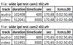 Real interframe delays are 99, 100 and 101 of 1/3000 sec. It is not strange that synchro is missing if we not using VFR info.