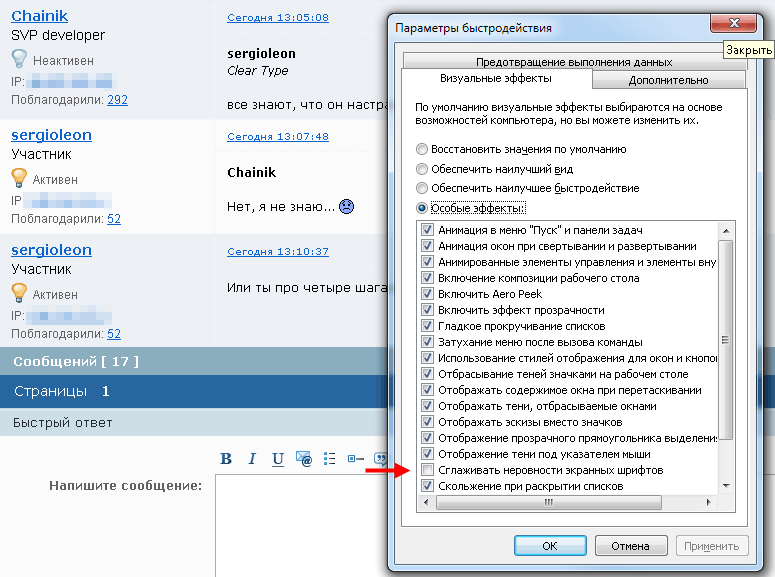 ещё эта настройка вкл / выкл Clear Type делает