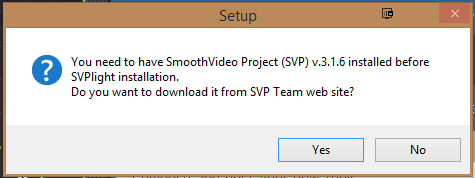 I run into a prompt after selecting my language to be English that tells me I need to download SVP 3.1.6 (and I've triple checked, triple downloaded including torrent, and reinstalled to try to verify) but it doesn't seem to recognize SVP on my system.