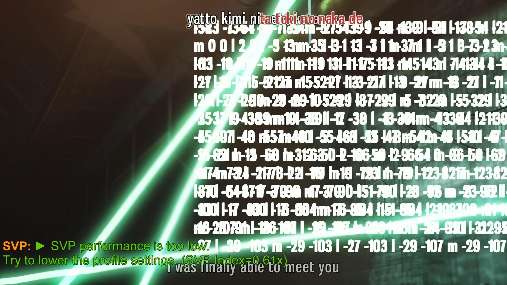 For some reason, I have been having problems with subtitles not showing up properly. I was watching an anime with a stylized subtitle (i.e. Railgun) which was supposed to look like this (https://www.youtube.com/watch?v=R3shsgKbd_M) but instead, the subtitles show up like wall of code and slows down svp to a crawl (see attachment). Is there any way to fix this or probably get mpc to use the autoloading version of directvobsub?