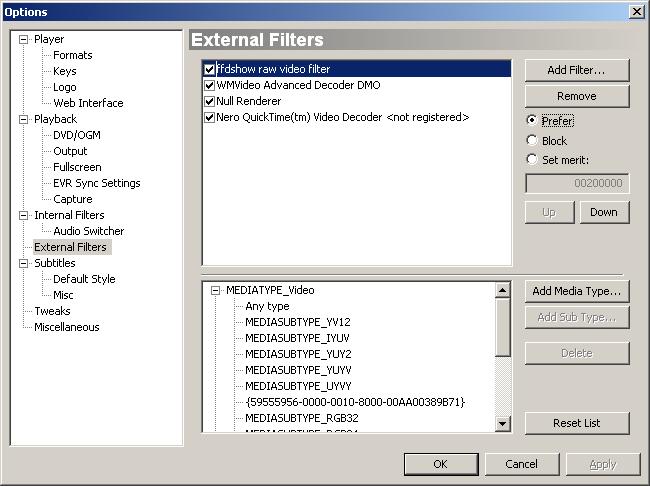 To fix the problem, you are advised adding the ffdshow raw video filter into the list of the external filters of MPC-HC and make it preferable, in the top of the list (as shown in the screenshot attached)