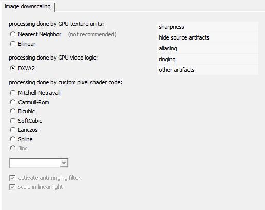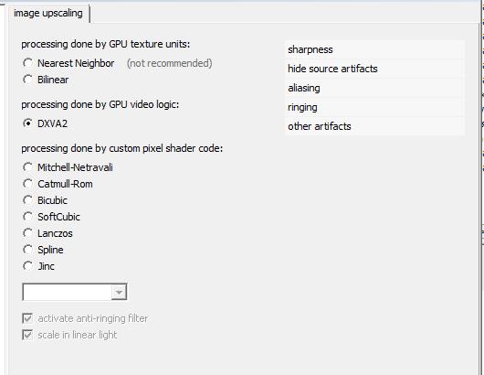 DXVA2 выглядит хуже бикубика и отрубает chroma upscaling и image dubling.