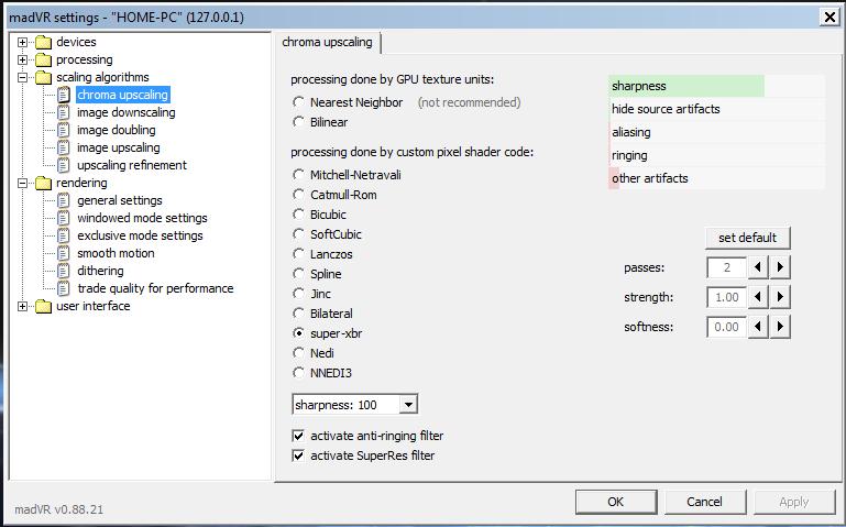А как же chroma компонент ? Dithering тоже классный в madvr. Ну и Adaptive Sharping на закуску.