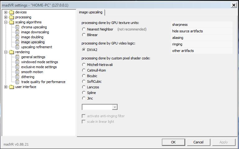 Я в основном руководствовался рекомендациями, изложенными тут: http://wiki.mikejung.biz/MadVR#MadVR_Scaling_Algorithms