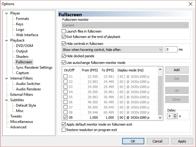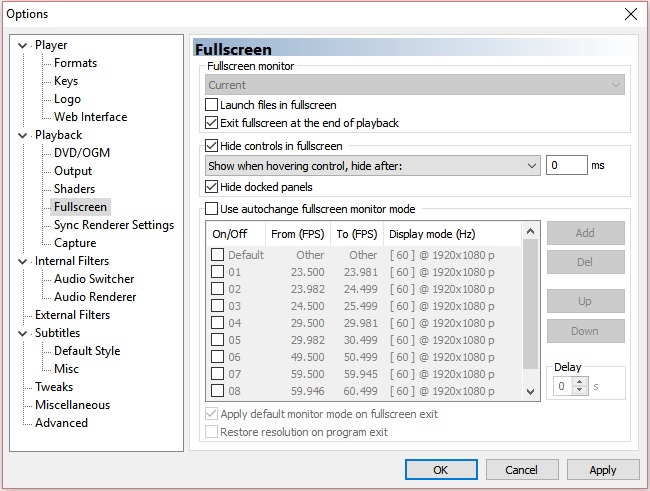 How can I stop MPC-HC from changing my display mode in full screen? I posted some screenshots in my previous post, maybe I need to change something else there?