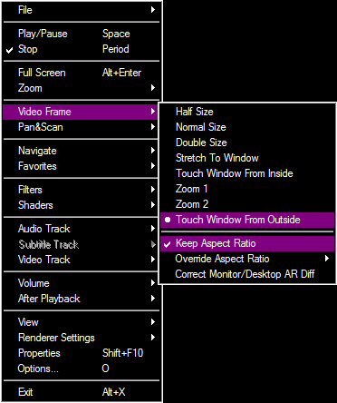When using Frame size options, how can I adjust the blue box on the media player? I would like to be able to adjust it up or down depending on what type of media I'm watching but can't figure it out. Using Ctrl+8/2 on MPC-HC moves the entire image up or down, not the blue box. Using the "Preview and fine tuning" box only adjusts the size of the frame, but I need to be able to move the frame area from the center of the video.