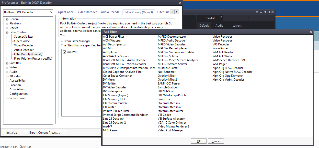 Делаю по инструкции https://www.svp-team.com/wiki/SVP:Daum_PotPlayer/ru, но у меня в списке фильтров нет "ffdshow filter video raw" Скриншот