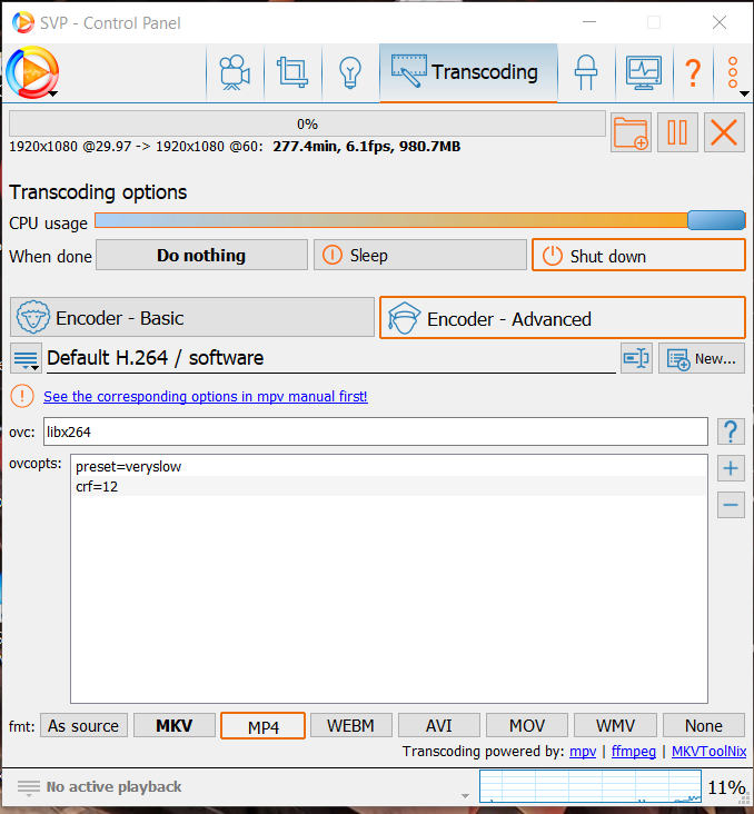 Hello, I've been transcoding anime to 60 FPS recently and half of the time the "mpv has stopped working" error pops up. Is there a way to fix this?