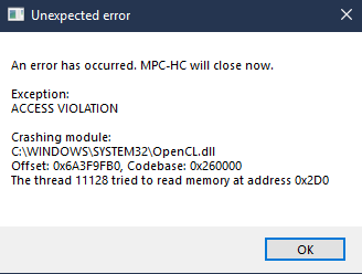 Re: MPC-HC OpenCL error when skipping the video a few seconds