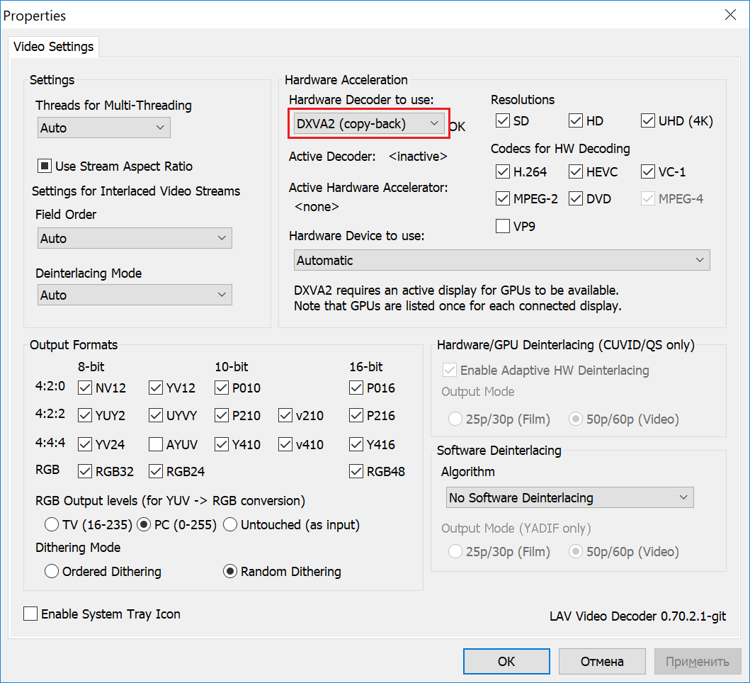 Те видео, которые изначально в 60 fps (то есть для которых SVP использовать нет смысла), при активированном DXVA2 Copy-Back (любые его варианты) выдают мне ~40 fps, что, само собой, неприятно. Если DXVA2 Copy-Back отключить, а фильтр ffdshow при этом оставить, то плеер (PotPlayer) почему-то переходит в режим S/W, в котором fps падает ниже плинтуса. Если отключить и фильтр, то активируется Native DXVA и всё чудесно, получаем оригинальные 60 fps.