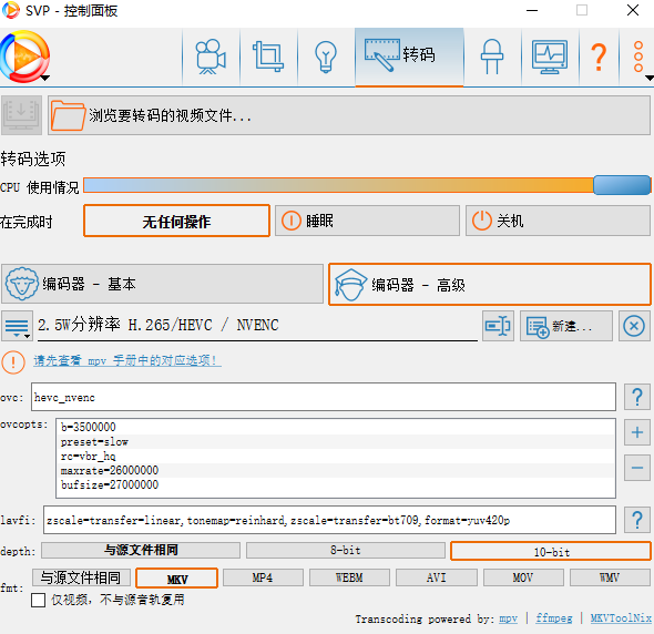 Dear senior developer: Hello, I would like to ask why the "distorted space" appears in the window position on my video after I convert H.265/HEVC. Nothing else happened except the square windows. How should I set up to eliminate the effect of "distorted space"? I am currently using SVP 4PRO for 120FPS conversion. This problem has troubled me for a long, long time. I very much hope that I can get a reply from senior developers to help me solve it. Very grateful.The following figure shows my current setting information.