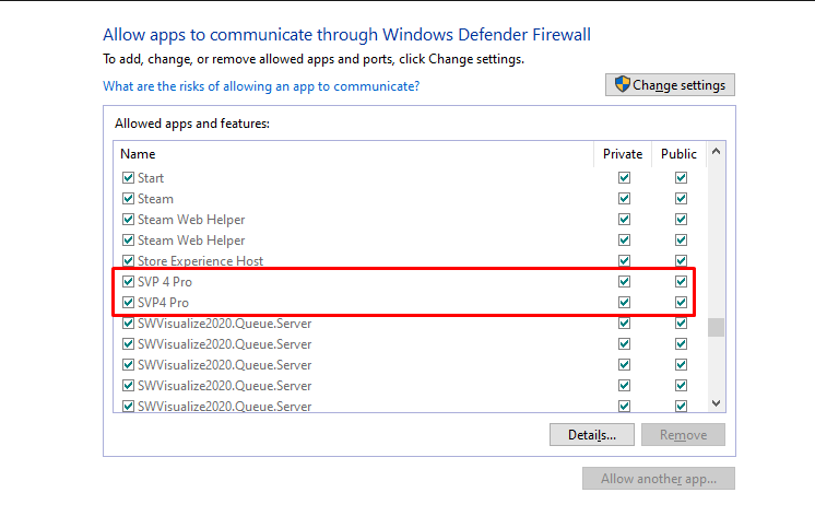 I even allowed SVP4 Pro through firewall and I don't have any other firewalls or antivirus programs.