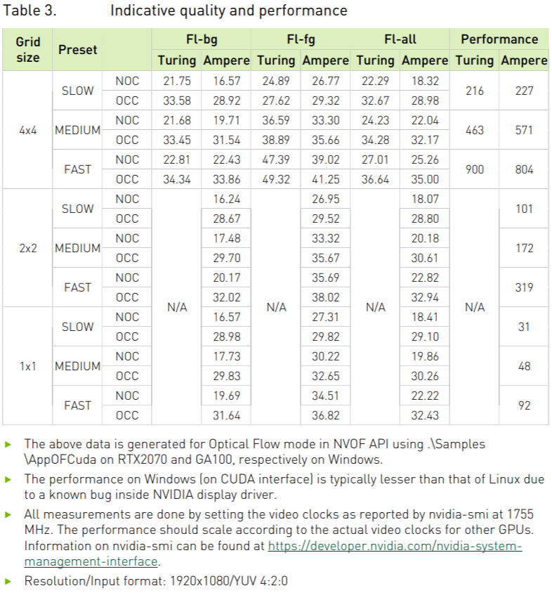 NVIDIA в брошюрке по ссылке выше пишет, что производительность NVOF зависит почти линейно только от частоты GPU.