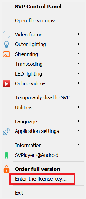 After that you will see Enter the license key option in menu: