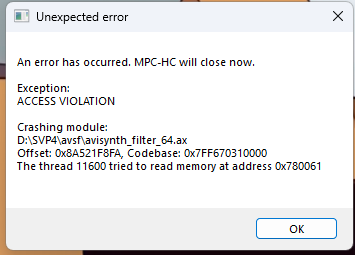 Hi, after installing last update I have an error when I launch a video with MPC.