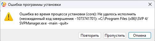 Нажимал "Повторить" - не помогало, нажал "Пропустить". Установка завершилась, при запуске SVP 4 Pro вылезает ошибка (вложение 1).