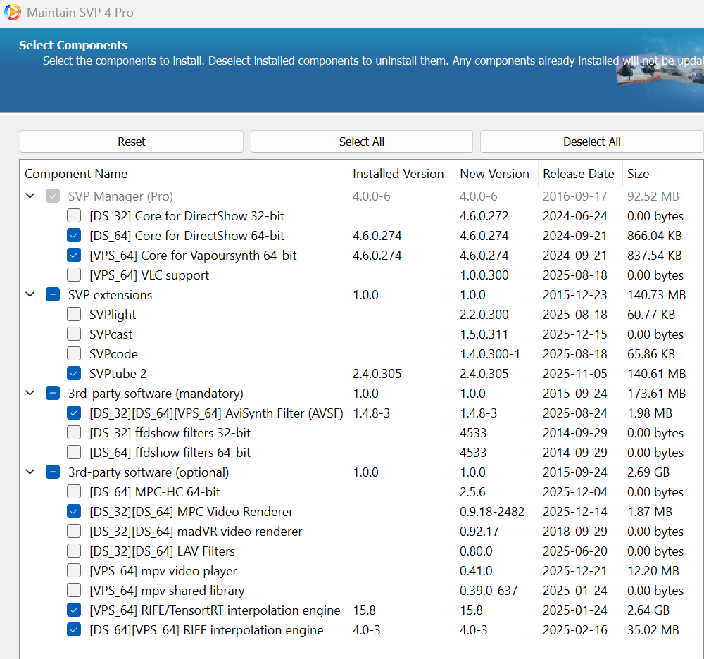 I started using SVP yesterday with VLC player. I'm in the 30-day free trial period. I really liked SVP because it doesn't cause the "ghosting" effect when used with RIFE. I'm thinking of buying a license.