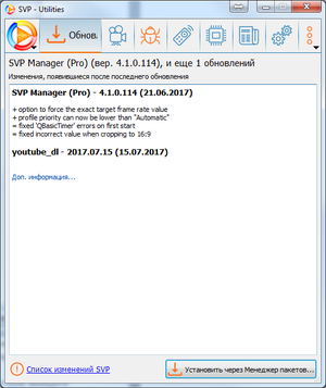 Для самого SVP и для входящих в него пакетов, часто появляются обновления, привносящие новые функции или исправляющие ошибки. При появлении обновления вы увидите сообщение в области системных уведомлений, а в Контрольной панели SVP появится раздел Обновления, содержащий список изменений.