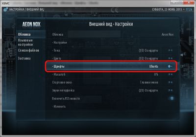 5. Запустить XBMC и переключиться сначала на шрифт ubuntu: Система - Внешний вид - Обложка - Шрифты - Ubuntu, и только затем на русский интерфейс.